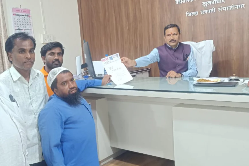 खुलताबाद, दि. २३ जुलै २०२५: खुलताबाद तालुका तहसील कार्यालयात आज मा. जिल्हाधिकारी दिलीप स्वामी यांनी भेट दिली असता, प्रहार दिव्यांग संघटनेने त्यांच्याकडे तालुक्यातील दिव्यांगांच्या समस्यांसंदर्भात निवेदन सादर केले. या निवेदनातून दिव्यांगांच्या प्रलंबित मागण्यांकडे लक्ष वेधण्यात आले असून, जिल्हाधिकाऱ्यांनी या समस्यांचे निराकरण करण्याचे आश्वासन दिले आहे.