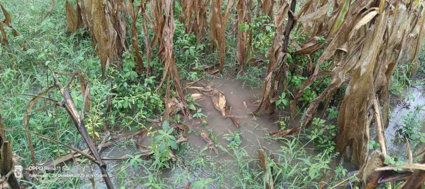 रहीमपूरच्या शेतात उभे राहिले की फक्त पाणी, गाळ आणि निराशा दिसते. हारून शेख (३७) यांच्या २ एकर मक्याच्या शेतात आज सकाळी पाणी तुडुंब. कापणीसाठी दोन दिवस उरले होते.